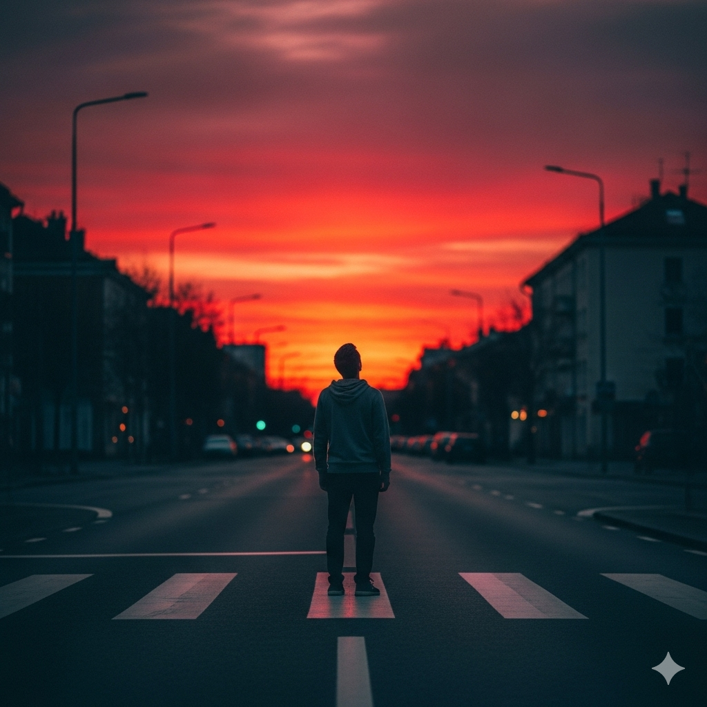 그때 붉은 저녁노을. 방황하는 미래를 맡기며