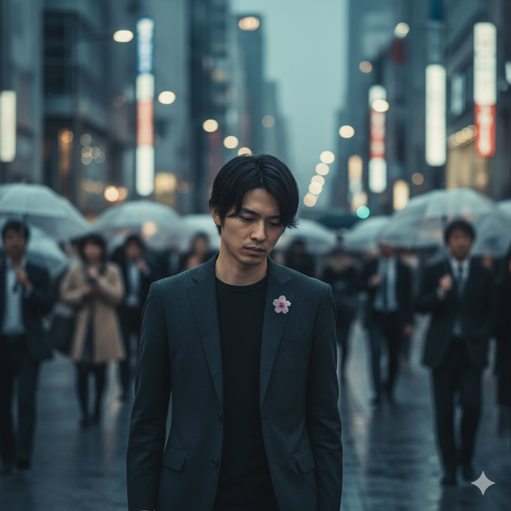 '양복에 꽃이'는 무감각한 현대 사회에서 살아가는 한 예민한 영혼의 이야기를 다룬다.